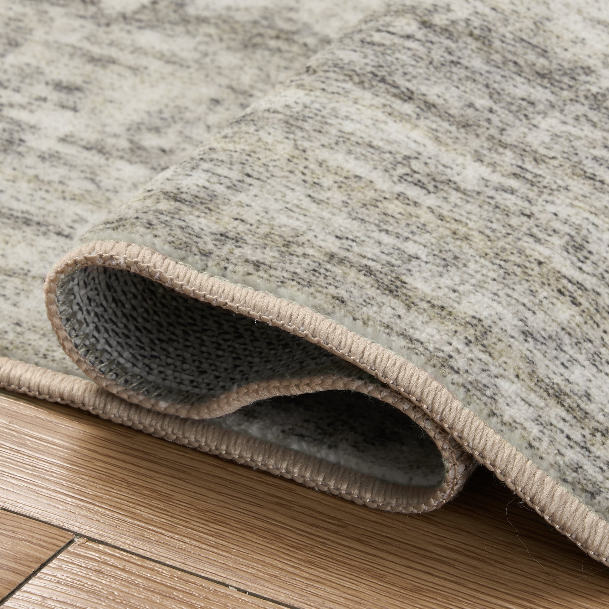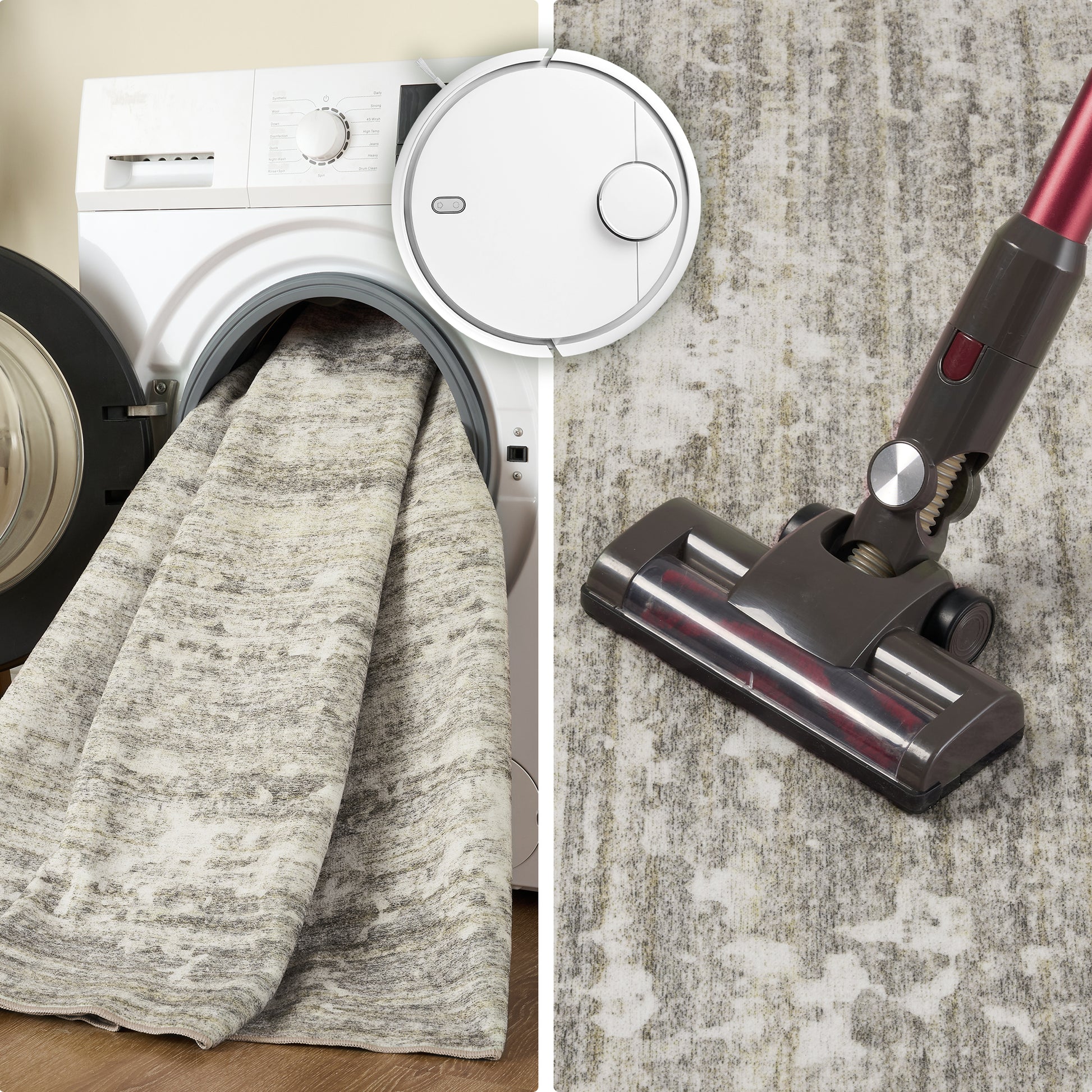 Elevate your home with this modern abstract rug in warm sage and taupe. Its soft, distressed linear design evokes a cozy, weathered-wood look, perfectly complementing minimalist, rustic, or transitional spaces. Designed for busy homes, it features a liquid-resistant surface and non-slip backing, while the low 0.28" pile provides a soft, comfortable feel underfoot. Easy to care for and machine washable, this rug combines style, practicality, and everyday comfort in one elegant piece.