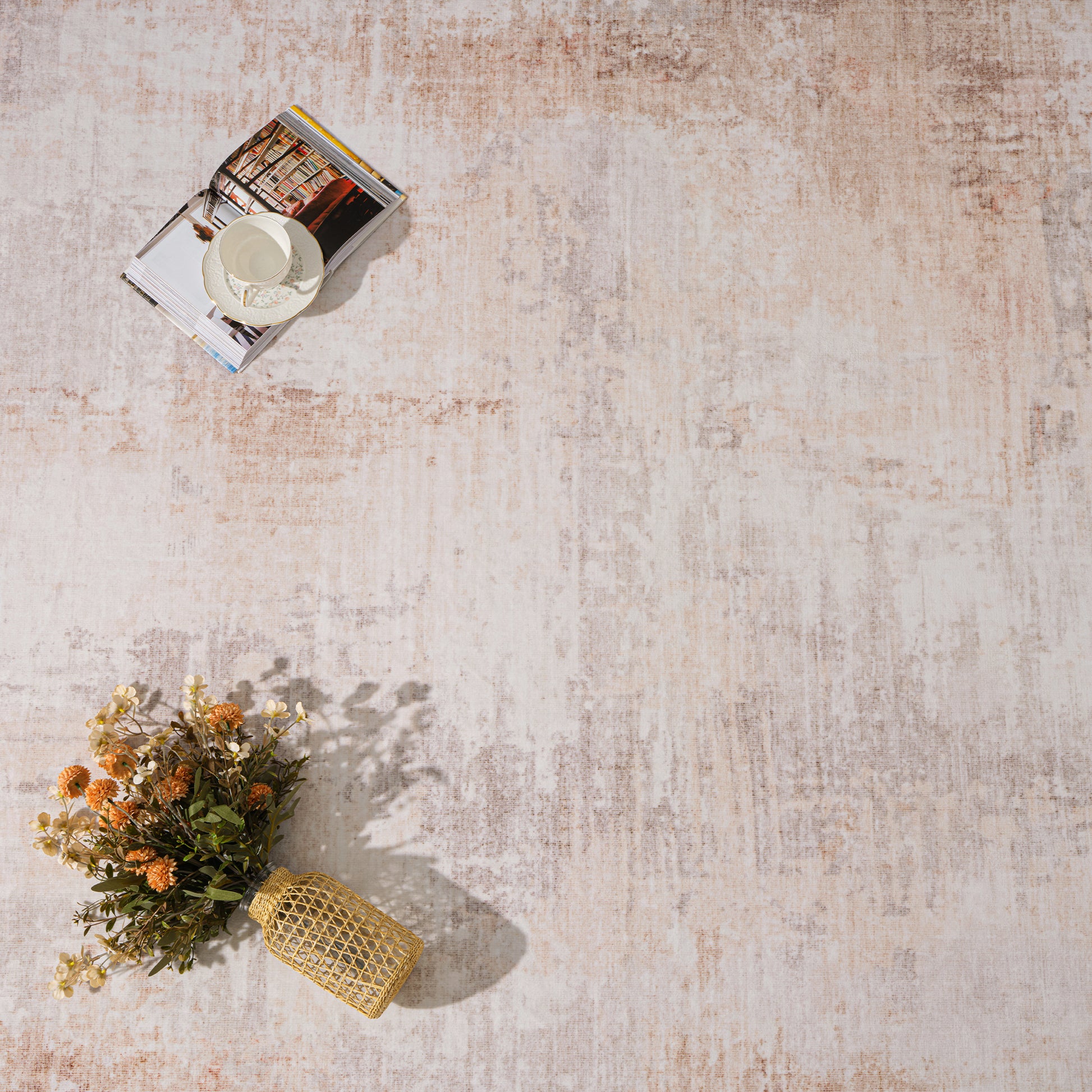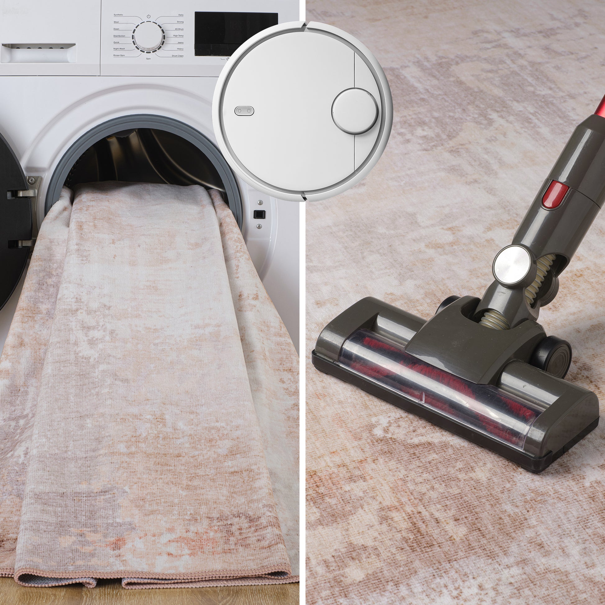 Bring warmth and style to your home with this blush-toned area rug. Designed with a soft abstract pattern in peach and ivory, it adds a cozy, modern touch to any space. The low 0.28" pile makes it great for high-traffic areas, while the liquid-resistant surface and non-slip backing keep it practical and safe. Plus, it’s machine-washable for easy care—perfect for busy homes with kids and pets.