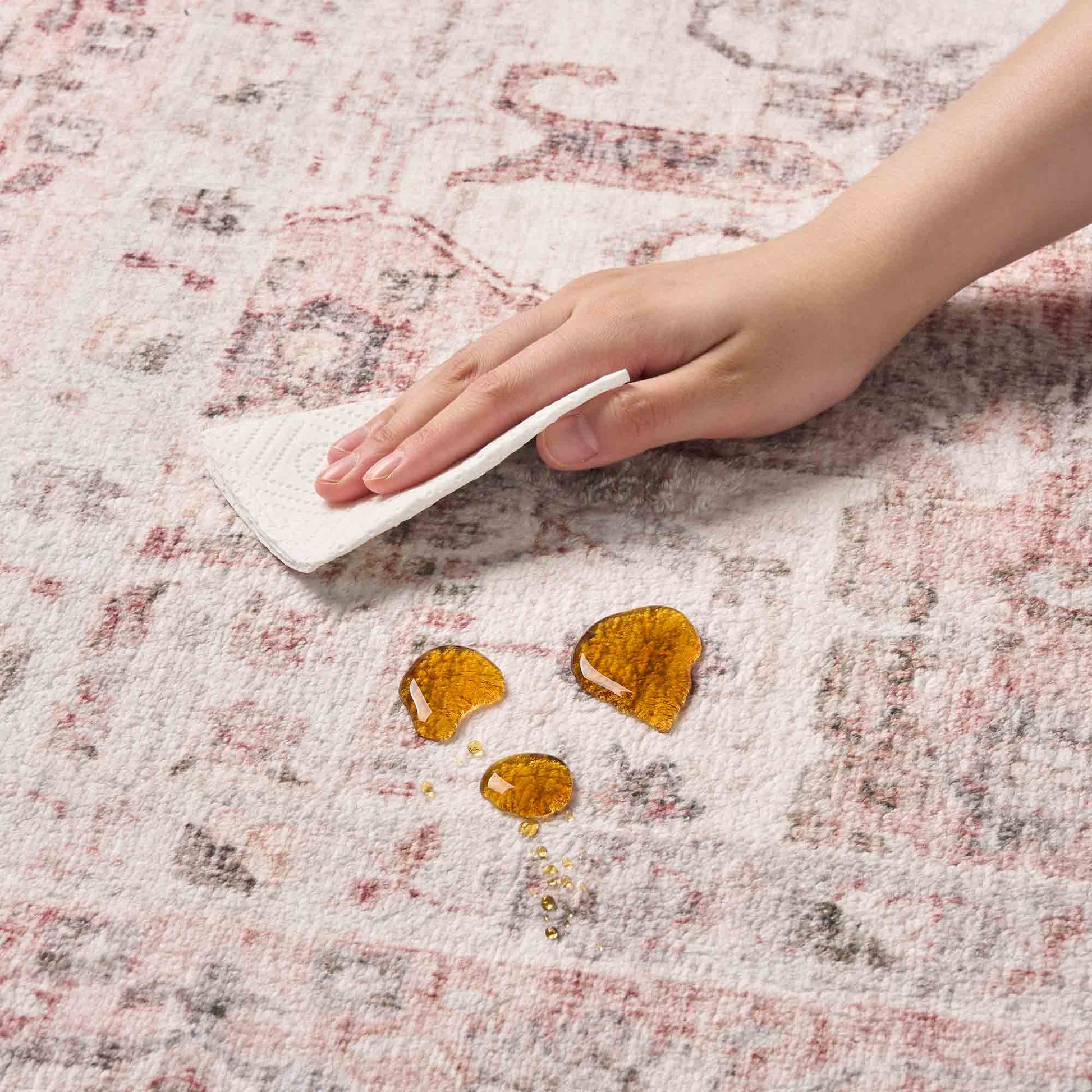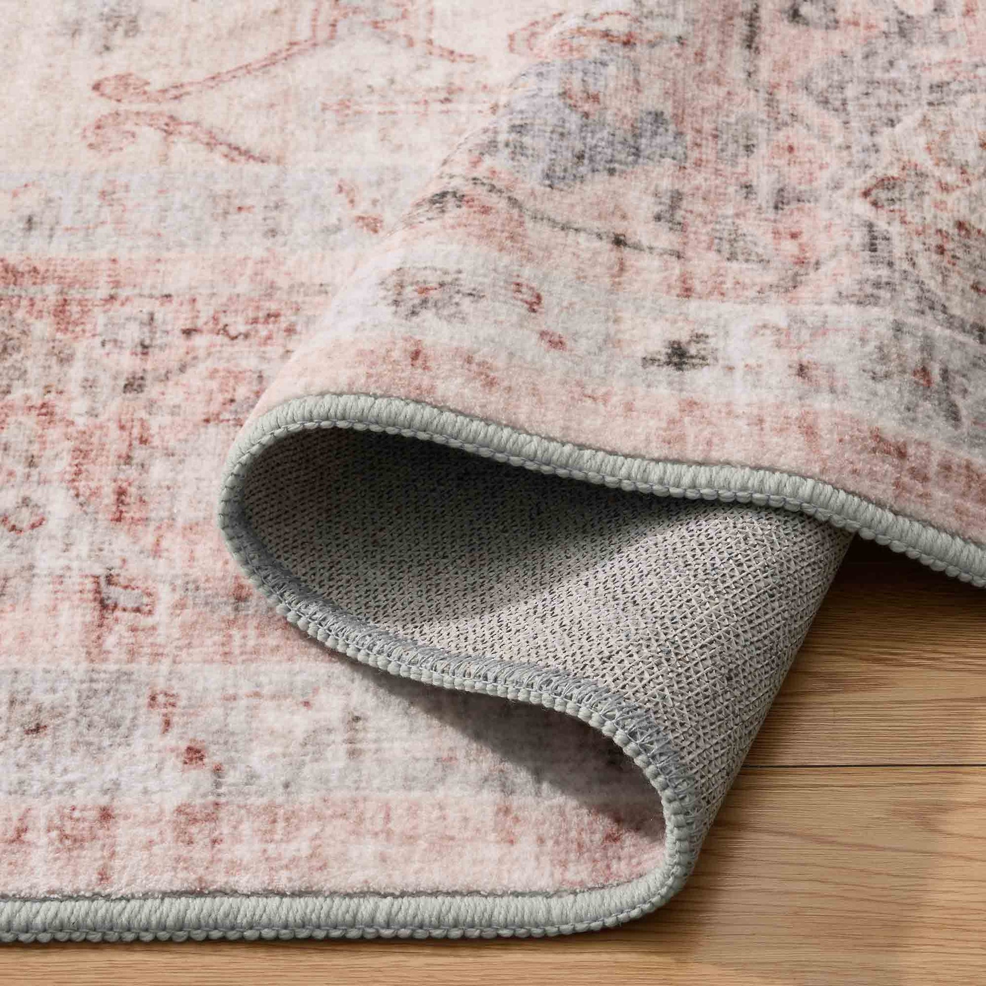 Enhance your home with the charm of this pink floral rug, featuring a timeless pattern and elegant border. Its soft, durable fibers provide a comfortable feel underfoot, while the non-slip backing ensures safety for kids and elders. Easy to wash and maintain, it’s ideal for families with pets or children, combining style, practicality, and everyday comfort.