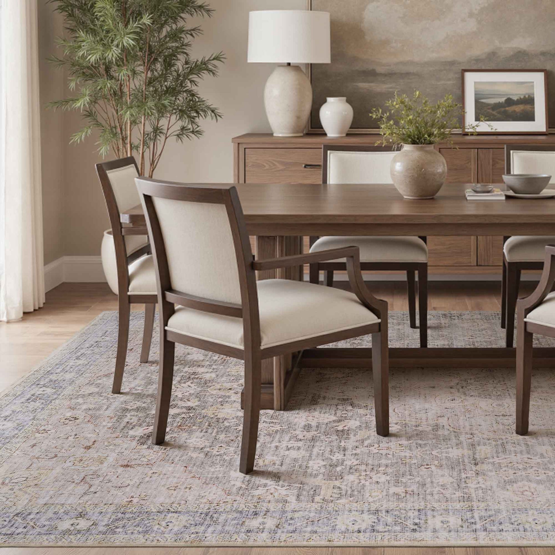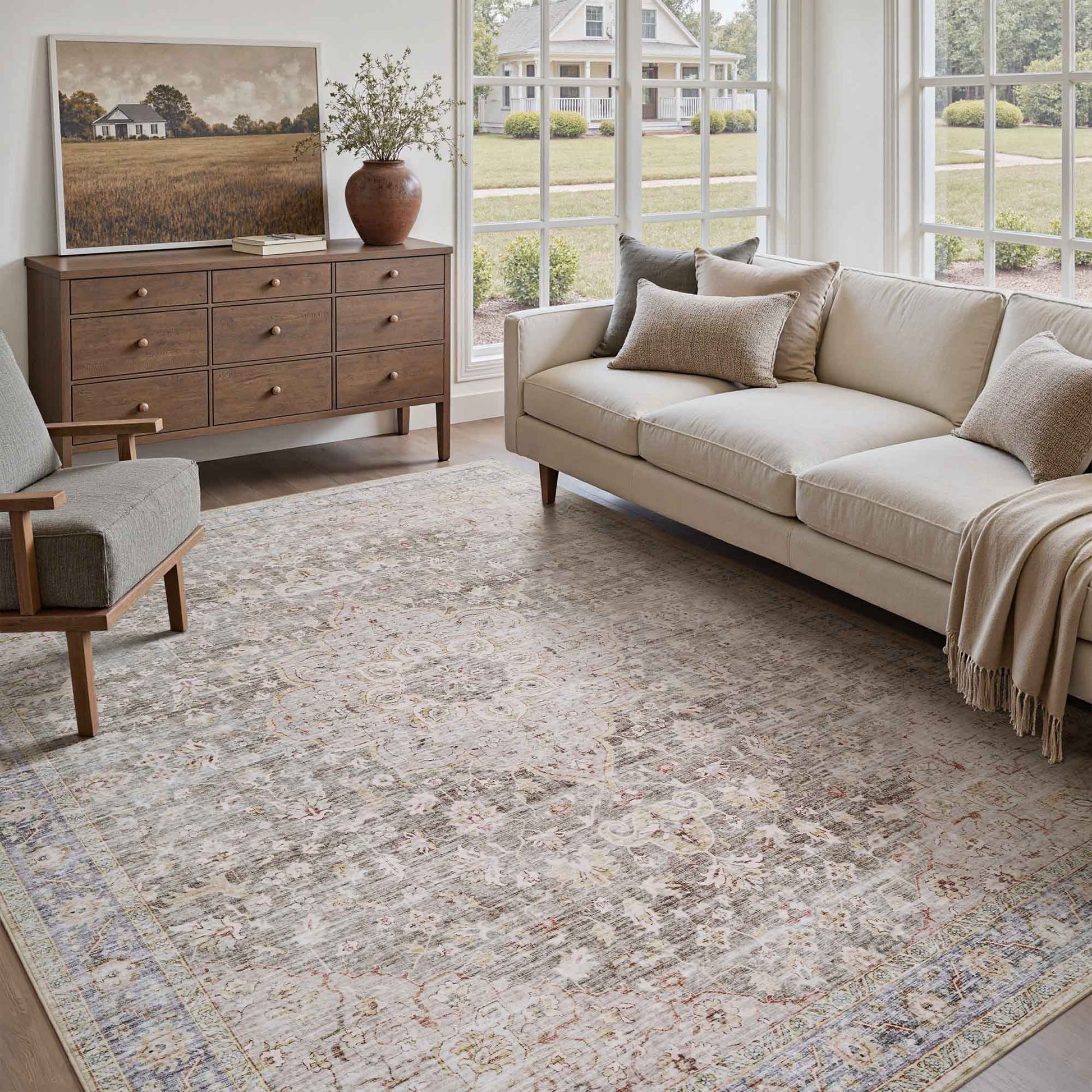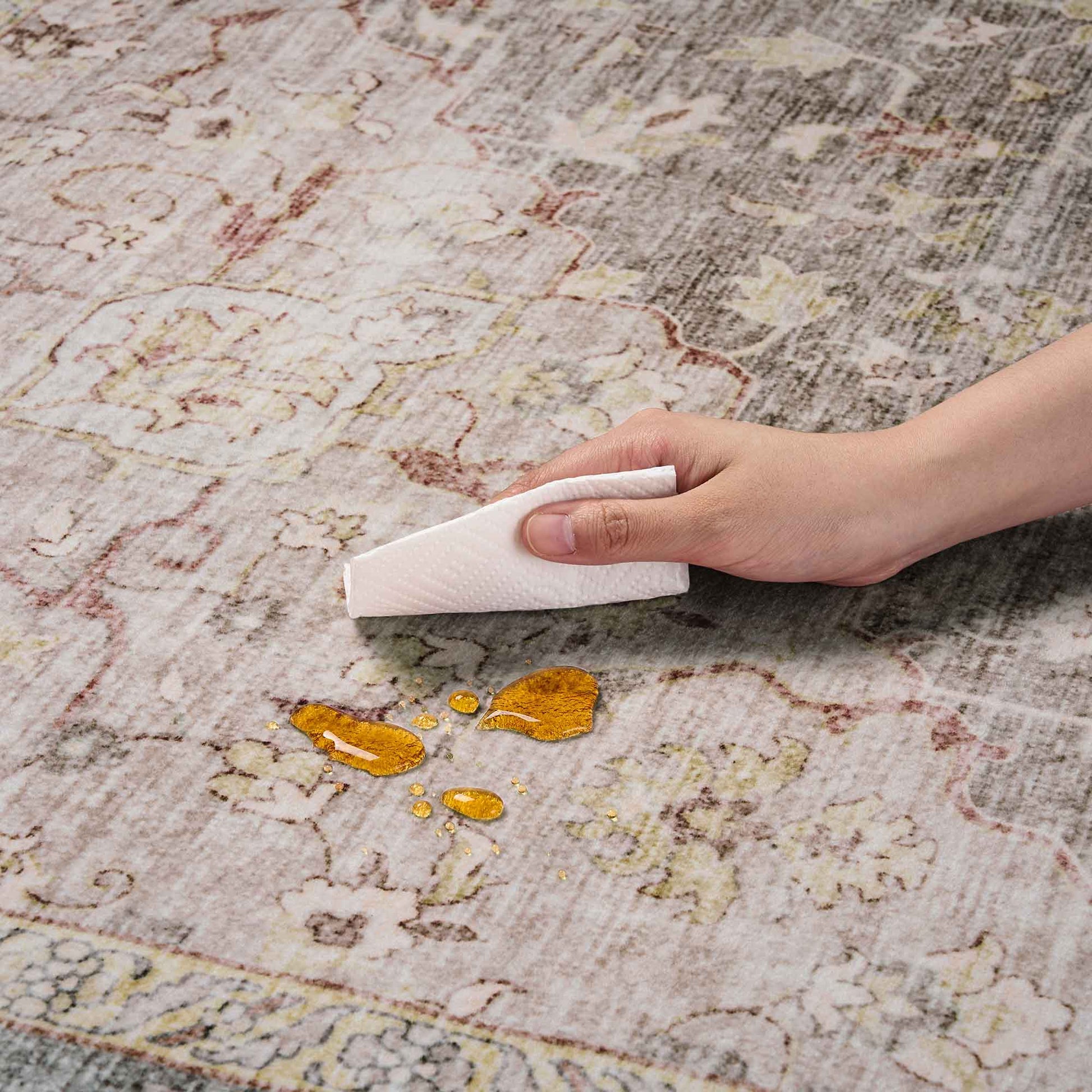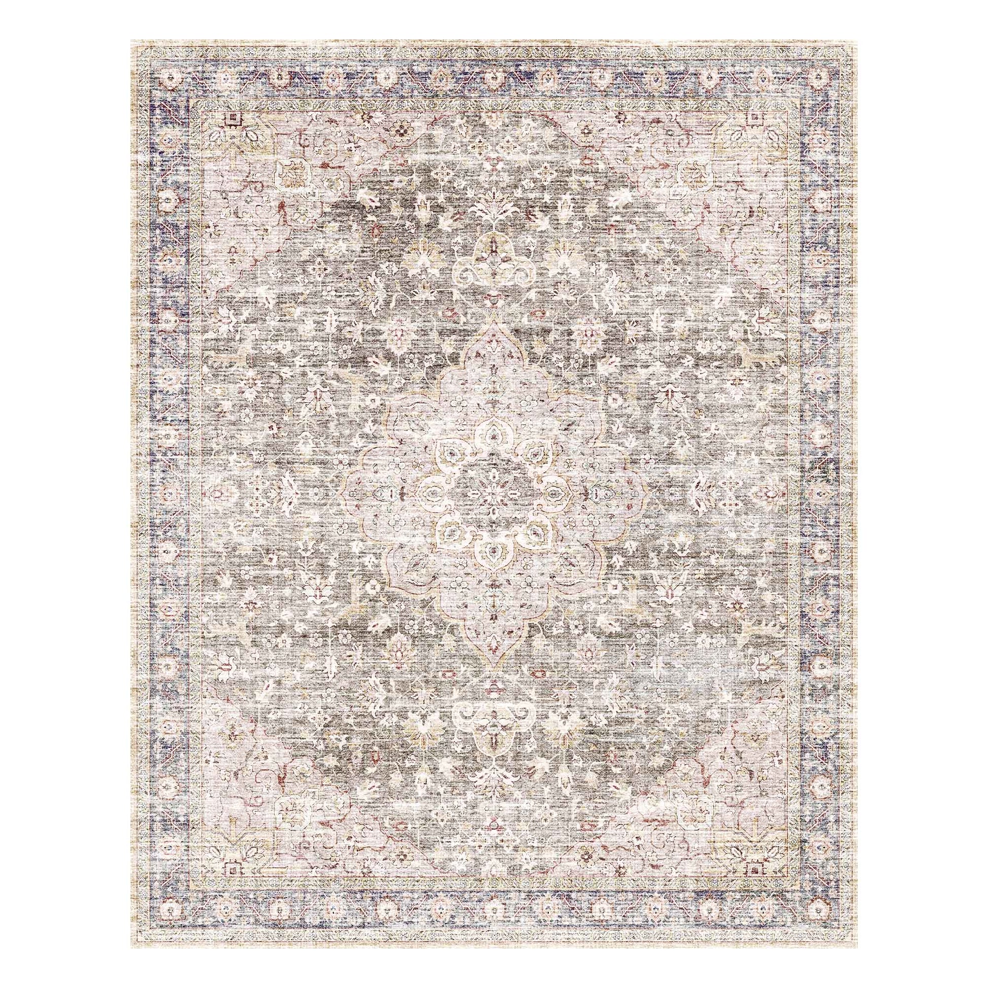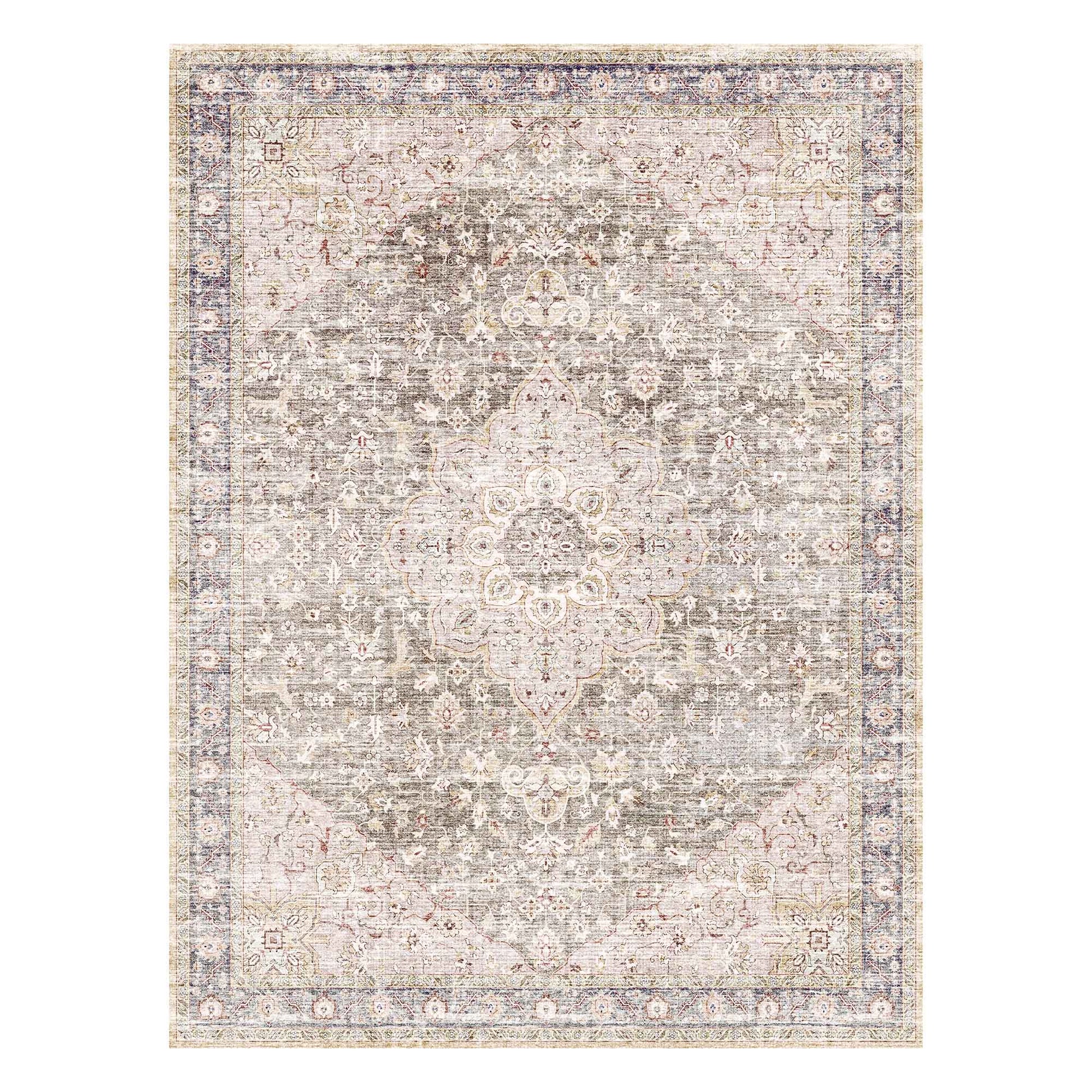 Featuring graceful floral details in a warm taupe hue, this rug adds a touch of vintage charm to any room. Its soft texture makes it comfortable underfoot, while the non-slip backing keeps it securely in place. Washable and low-maintenance, it’s a family-friendly choice designed to handle everyday life with kids and pets.