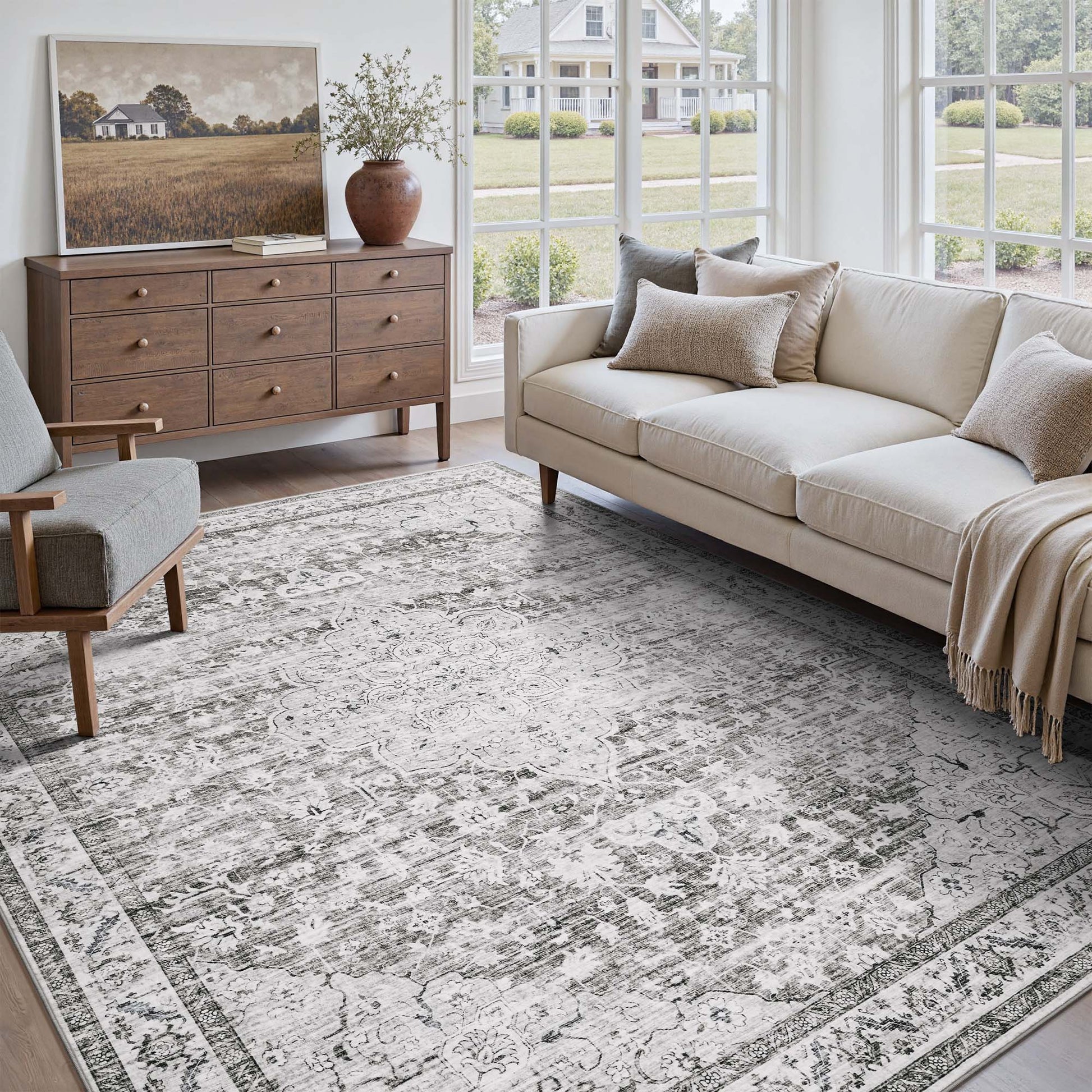 Featuring graceful floral details in a warm taupe hue, this rug adds a touch of vintage charm to any room. Its soft texture makes it comfortable underfoot, while the non-slip backing keeps it securely in place. Washable and low-maintenance, it’s a family-friendly choice designed to handle everyday life with kids and pets.